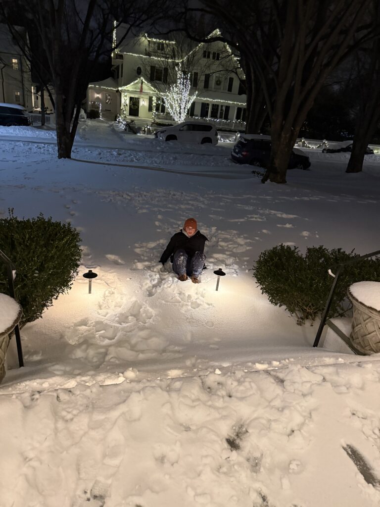 Well, we got walloped with the snowstorm that was threatening all week. It snowed all day yesterday and dumped about 8 inches plus sleet and freezing rain. It was cozy here. We have been binge-ing Survivor Game Changers and we played a game of Clue (N won early) and we’ve had some dinners and we watched football at Andrew’s last night and we shoveled and N went sledding today with Jake and Will and a bunch of other small things. No school today or tomorrow. Store was closed yesterday and today.